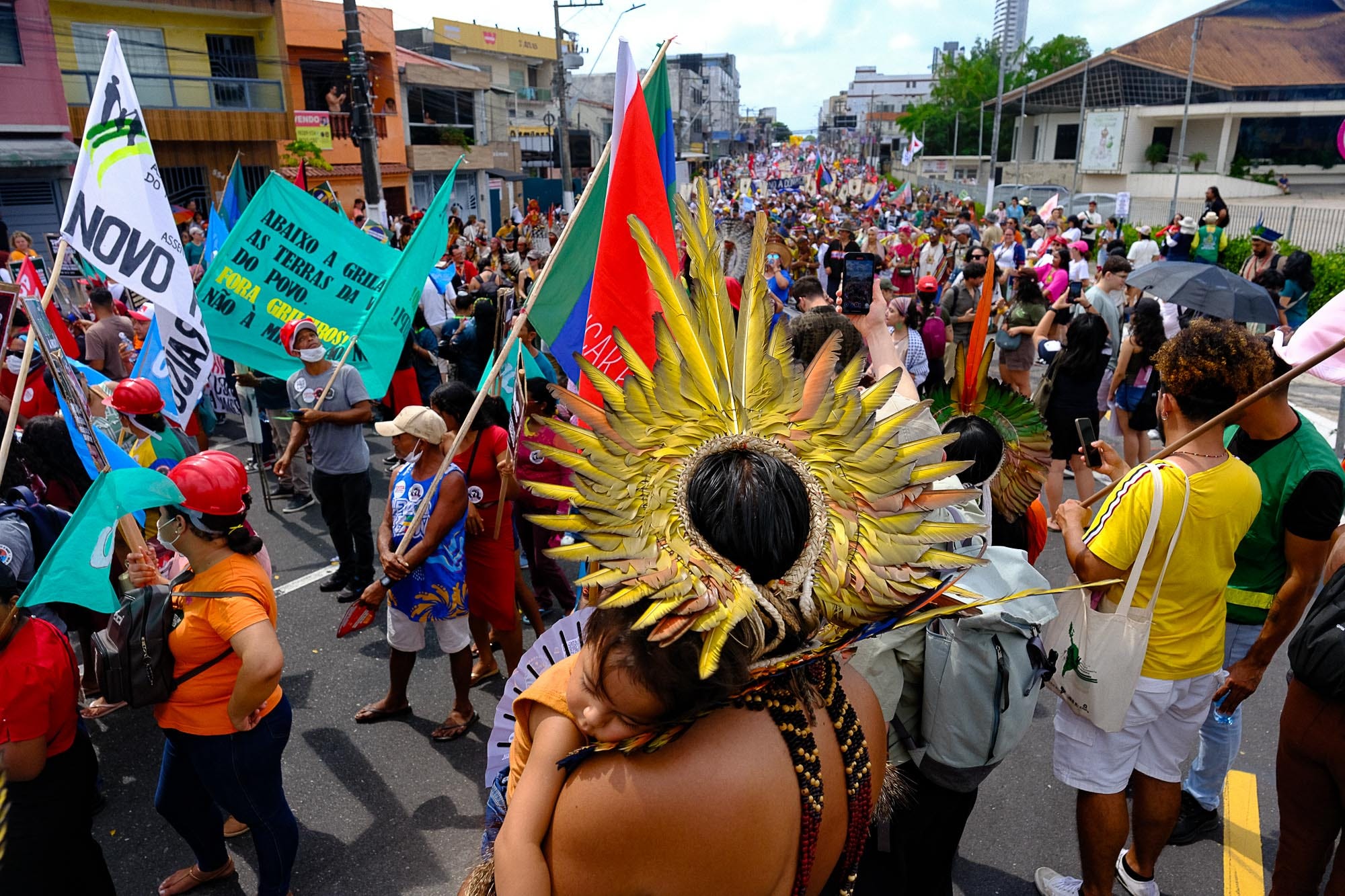 At the same time, local and Indigenous communities did not remain passive. During COP30 they organized mass mobilizations and parallel spaces in Belém. Movements such as the Cúpula dos Povos (“People’s Summit”) brought thousands of people into the streets: Indigenous groups, rubber tappers, riverine communities, and allies from social movements and NGOs. Together they demanded a real say in climate and land policies, with a clear focus on climate justice, territorial rights, and stopping destructive projects like Ferrogrão and new oil exploration.